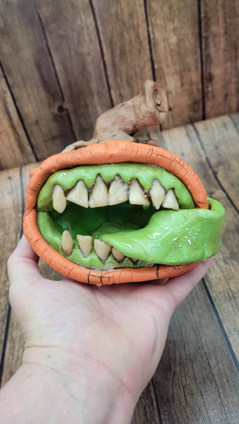 Punkin is 6 " h x 6 " w x 4" d . He is made of durable polymer clay but can break if mishandled. This is not a toy.