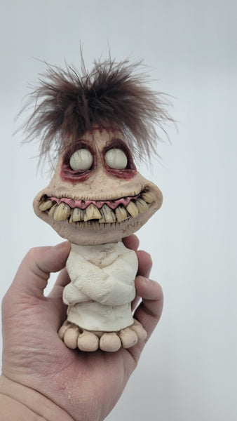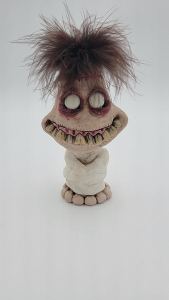 Each piece is hand sculpted and painted from a durable polymer clay but can break if  mishandled , these are NOT toys . the eyes do glow in the dark and are charged by light ( sunlight or UV light work best . ** group pic is solely for showing the glowing eyes , this is a listing for only one sculpture