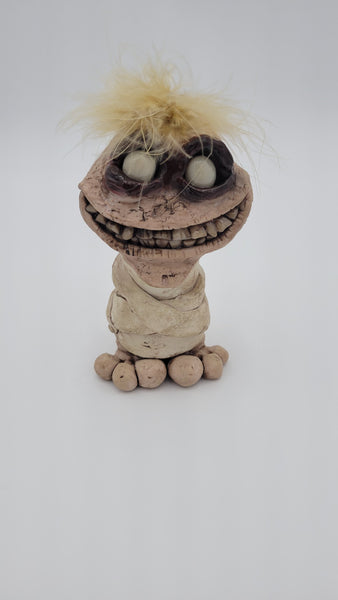 Each piece is hand sculpted and painted from a durable polymer clay but can break if  mishandled , these are NOT toys . the eyes do glow in the dark and are charged by light ( sunlight or UV light work best . ** group pic is solely for showing the glowing eyes , this is a listing for only one sculpture