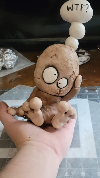 WTF Dolls hand sculpted and painted , each is @ 9 1/2" tall , they are hand sculpted with durable polymer clay but will break if mishandled , these are not toys . Display how you feel ! These are made to order and turn around time is @ 1-2 weeks from order to shipping